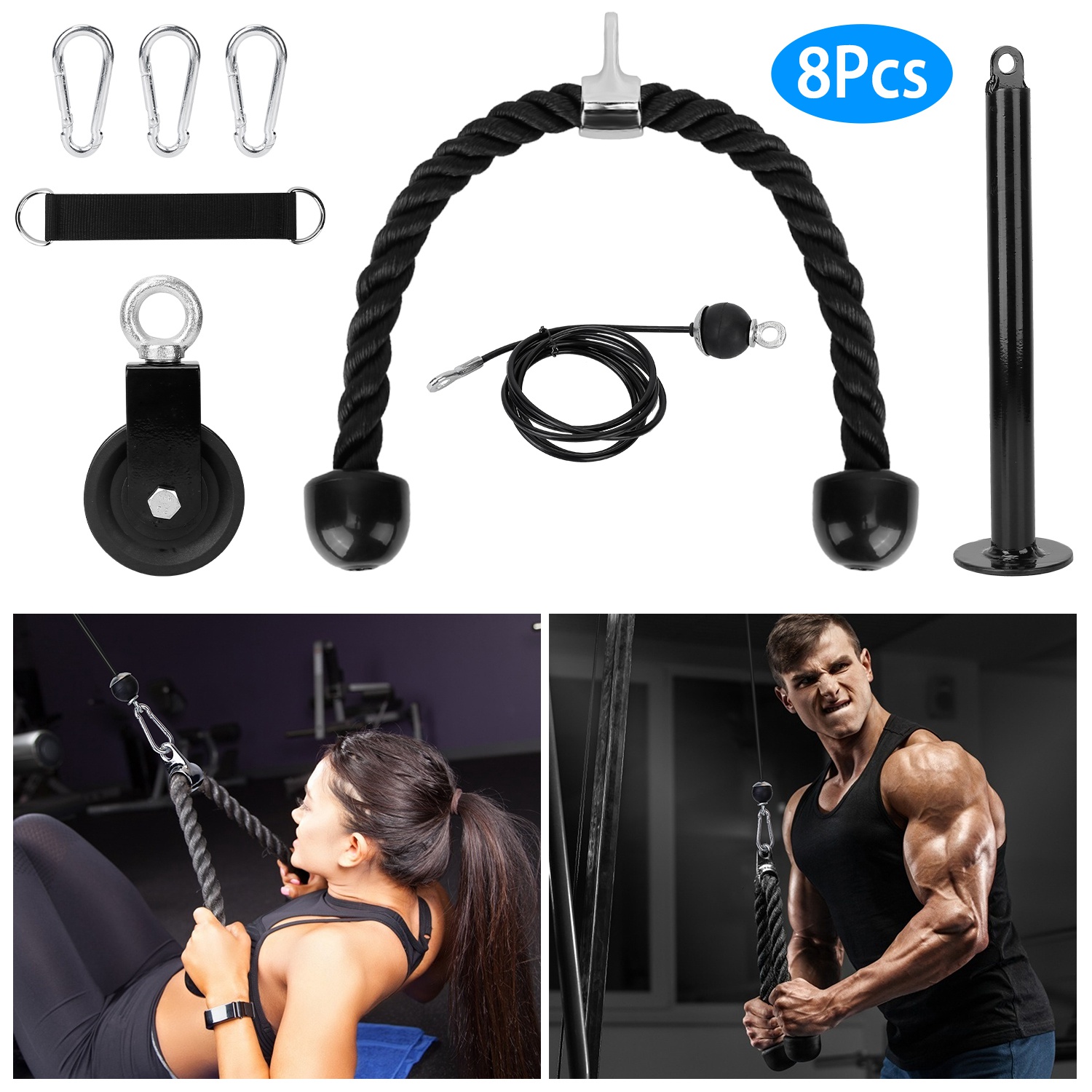 Home > 8Pcs Cable Pulley System Gym Fitness LAT and Lift Pulley System DIY Home Gym Equipment Gym Machineï Tricep Rope Cable Attachment For Arm Strength Tr